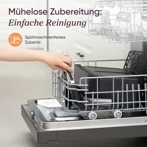 • 𝗗𝘂𝗮𝗹𝗕𝗹𝗮𝘇𝗲-𝗧𝗲𝗰𝗵: Dank Ober- & Unterhitze sind Vorheizen und Wenden überflüssig. Die präzise NTC-Steuerung sorgt für perfekte Maillard-Krusten: außen kross, innen saftig in Rekordzeit